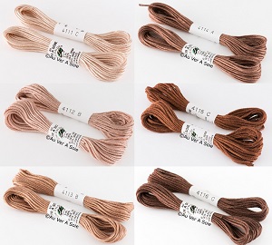 Nous avons choisi de vous présenter ces soies par gamme de couleur pour mieux vous guider dans votre choix. Contactez –nous en cas de doute ou si vous voulez avoir les conversions avec d'autres références de fils.