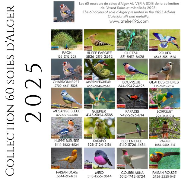 BONNE NOUVELLE, voici de quoi vous faire plaisir en attendant l'Avent 2025 : retrouvez les 20 cartonnettes de 3 x 2 m de soies d'Alger avec les petites cartes moodboard / tableaux d'inspiration autour du thème des oiseaux à recevoir dans une jolie pochette kraft que vous pourrez glisser dans votre pochette à ouvrage / sac à main ect !