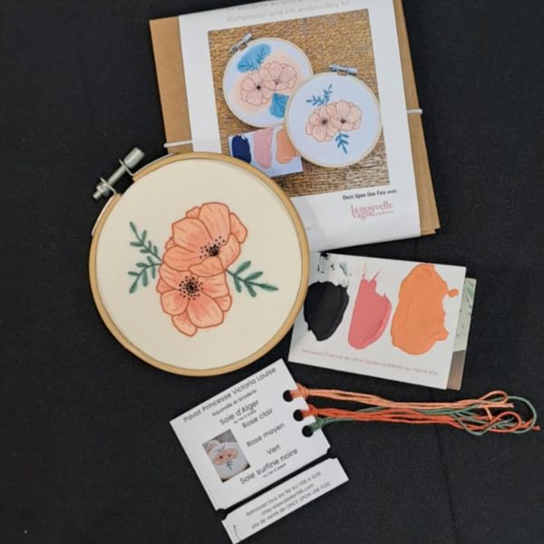 Nous sommes fières de pouvoir vous proposer un kit mêlant soie et aquarelle avec les aquarelles faites mains par LA NOUVELLE VAGUE COULEURS, toujours le Pavot mais cette fois en soies d'Alger coordonnées avec les couleurs des aquarelles !