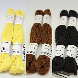Infos AU VER A SOIE : Laine Fined'Aubusson, 100% merinos, développée par Au Ver à Soie en collaboration avec la Route de la Laine, teinte par un artisan d’Aubusson. Echevette de 8 m en 4 brins.